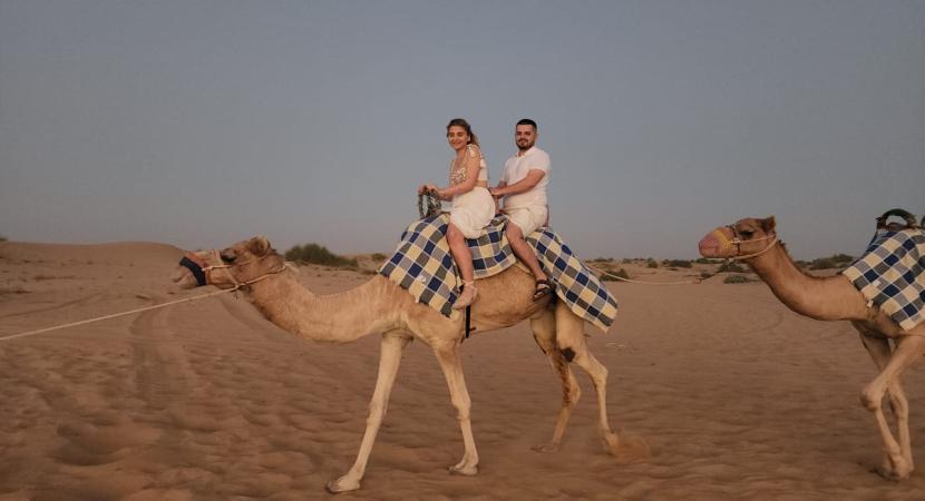 Take a step back in time and enjoy a peaceful camel ride through the vast desert landscape โ a truly authentic Arabian adventure.